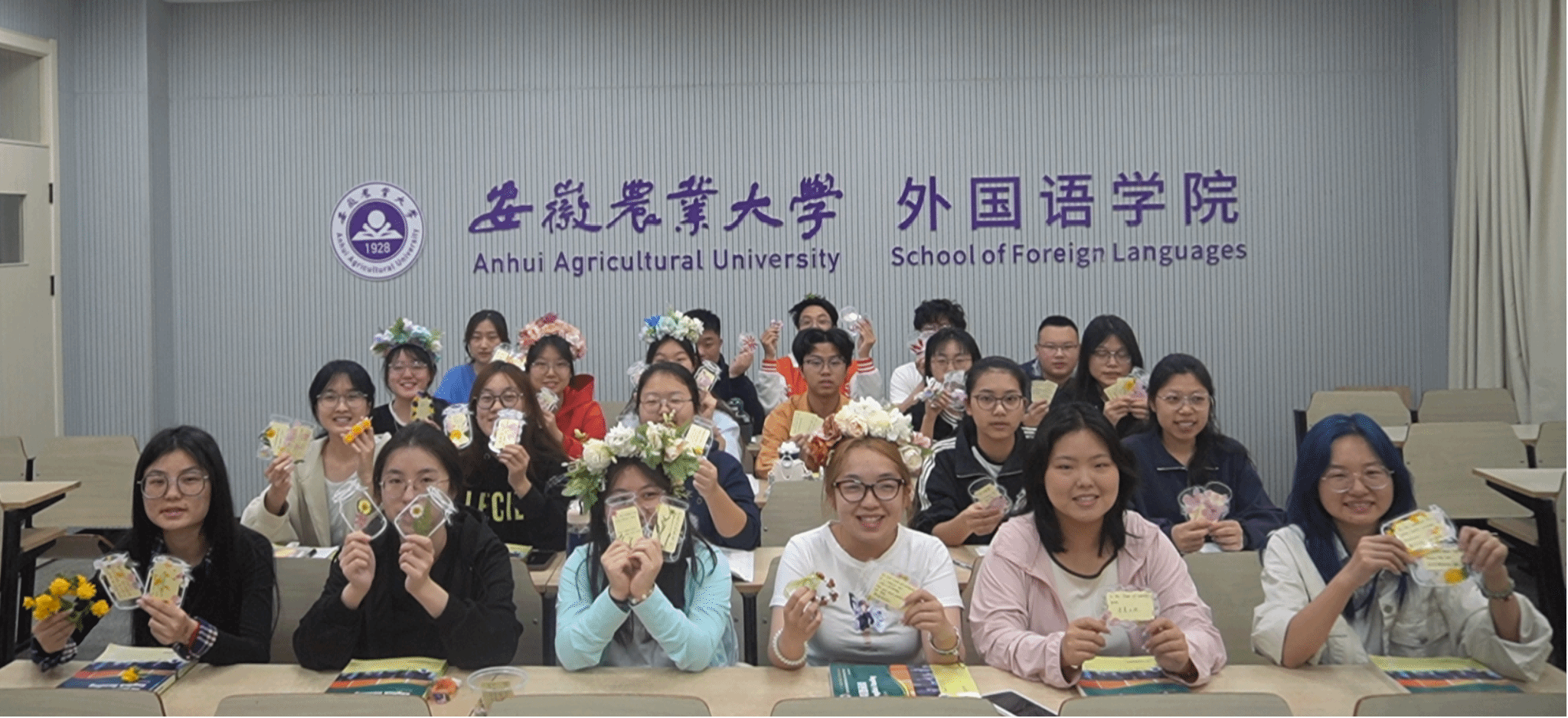 本网讯 2025年4月23日,安徽农业大学外国语学院举行了“春言春语颂春天”讲座活动,全校共400余名学生参加本次活动。活动由安徽农业大学校团委主办外国语学院分团委承办,外国语学院师生参与了本次活动,活动由郎琴芳老师主持。