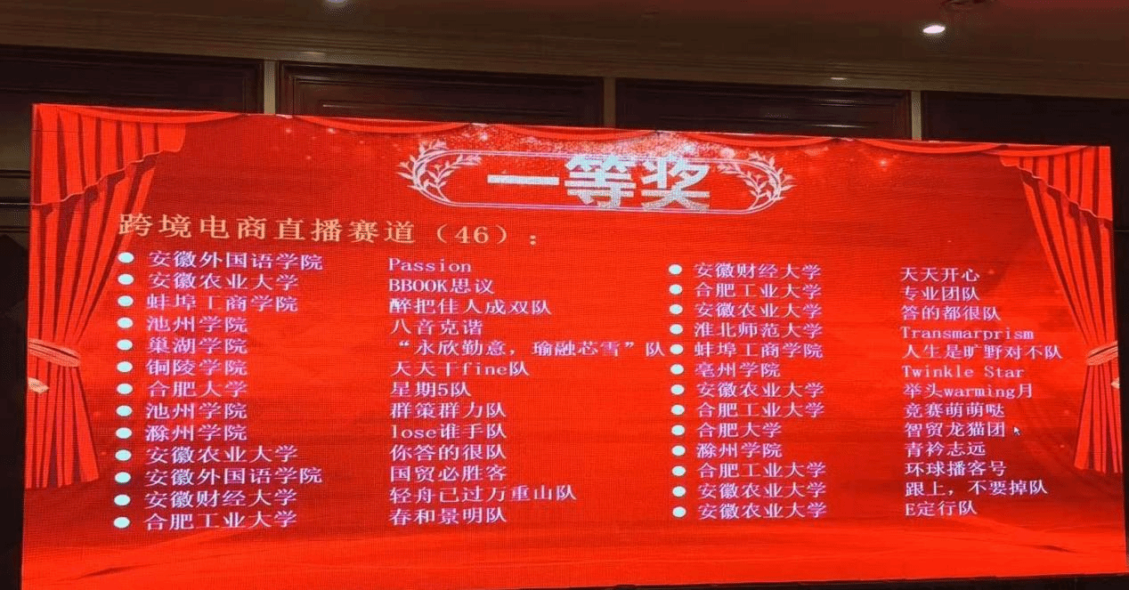 本项赛事属于安徽省大学生学科竞赛B类赛事,设有跨境电商直播、跨境电商大数据运营分析和跨境数字营销短视频创作三个赛道。本年度共有1568支队伍参赛,617支队伍入围省赛决赛,经过专家评审和现场角逐,最终评出一等奖114项。