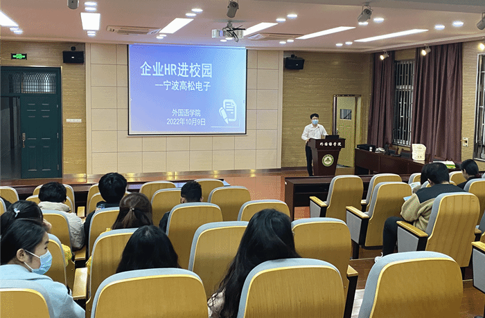 为搭建用人单位与毕业生双向平台,拓宽就业渠道,切实做好2023届毕业生就业工作,10月9日晚,外国语学院在外语楼502报告厅成功举办了宁波高松电子有限公司人才招聘专场见面会,来自宁波高松电子有限公司人力资源部的工作人员、部分2023届毕业生等参加了见面会。