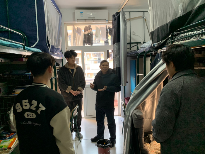 2月26日,学院党委书记方章东带队学院领导班子,深入学生宿舍进行走访检查,将巡查中发现的问题及时通报并限时整改。走访过程中,鼓励同学们要积极参加爱国卫生运动,叮嘱大家要注重个人卫生,保持良好生活习惯,做好自我健康的第一责任人,共同努力营造和谐整洁的宿舍氛围。