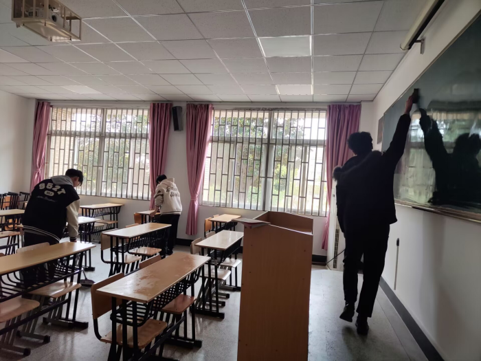 学院充分动员教师队伍力量参与其中,学生们积极响应号召。各教师党支部带头行动,对学院办公场所和公共区域进行全面清扫;各班级利用课余时间,打扫整理责任教室。同学们互相帮助,分工协作,不留卫生死角。桌椅、讲台、门窗……教室变得更加明亮整洁,学习氛围更加舒适。