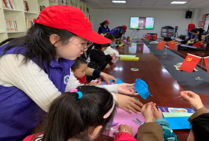 “本次活动,是青年学子积极响应国家号召大学生‘四进社区’的实际举措,不仅向社会奉献爱心,将所学文化知识回馈社会,也可以帮助小朋友们丰富假期的生活体验。”2022级英语专业的尹明晶表示。在她的耐心引导下,几位小朋友顺利制作出色彩鲜艳的菊花剪纸。“很开心能和小朋友们在一起游戏学习,看到他们亲手制作出了属于自己的作品,我也觉得成就感满满。”