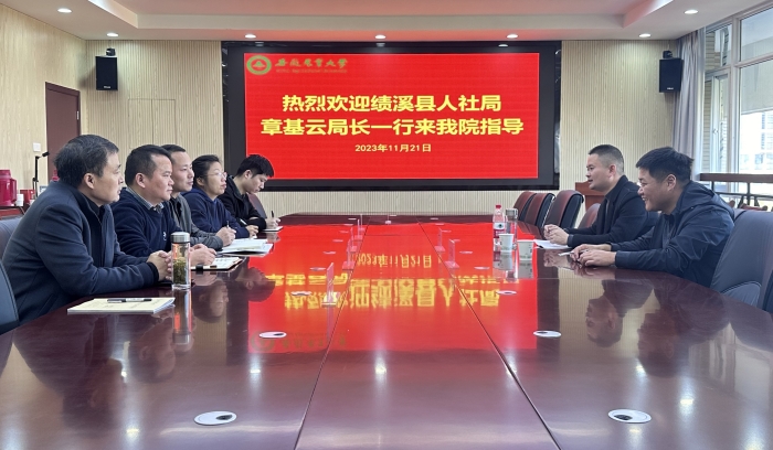 本网讯 11月21日上午,绩溪县人力资源和社会保障局党组书记、局长章基云一行来我院调研。院党委副书记姬惠惠、系(部)主任等参加了会议,会议由副院长许宗瑞主持。