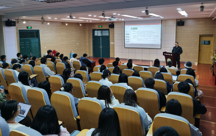 本网讯 11月22日晚,外国语学院公共外语教学部副教授张宜民在学院502报告厅做了题为“汉英农业谚语的习得与翻译”的专题讲座。本次讲座为学院“公外讲堂”系列讲座第十讲,来自全校各专业200余名本科生、研究生参加了讲座。
