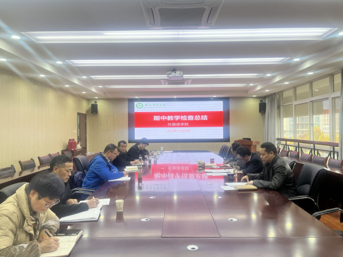 本网讯 11月29日下午,外国语学院召开2023-2024学年第一学期期中教学检查总结会,学院党委书记何如海、副书记姬惠惠、各系(部)主任和副主任、教学秘书等参会,会议由副院长许宗瑞主持。