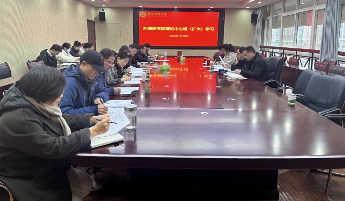 本网讯 1月18日上午,外国语学院召开党委理论学习中心组(扩大)学习会,学院党委理论学习中心组成员参会。会议由学院党委书记何如海主持。