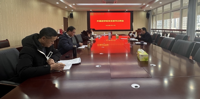 本网讯 2月27日下午,外国语学院于院楼506会议室召开党支部书记例会,党支部书记、副书记参加,会议由院党委书记何如海主持。