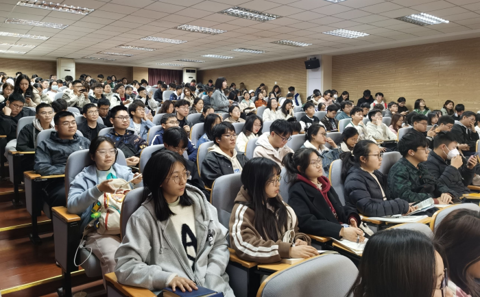 王驰结合自己多年来指导学生参加全国大学生英语竞赛的经历,简要介绍了竞赛的整体框架,对照样题讲解了各个题型的考察要点和解题思路,使用学习通分享备赛资源,与同学们探讨解题技巧。针对同学们提出的如何高效备赛、资料如何选择、考场上如何合理分配时间等问题,王驰也给出了自己的意见建议。