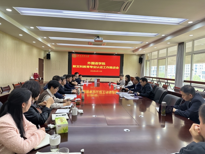 本网讯 为进一步推进新文科专业认证工作,4月12日外国语学院于院楼506会议室召开新文科认证工作推进会,院领导班子、各系(部)主任及副主任、行政管理人员参会。会议由副院长许宗瑞主持。