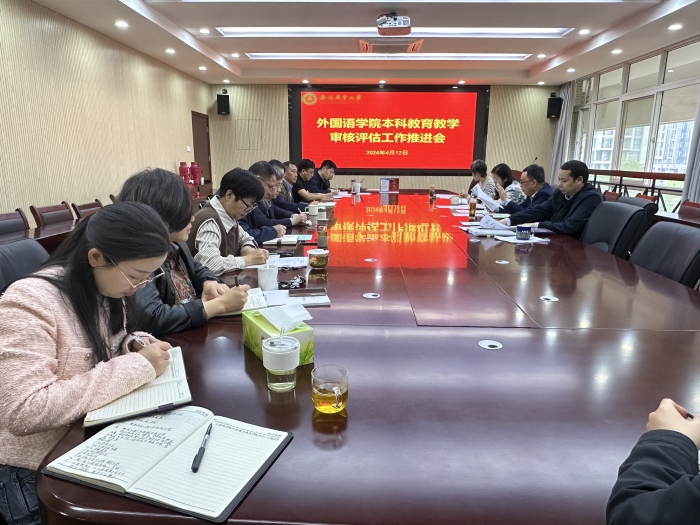 本网讯 为扎实推进本科教育教学审核评估迎评促建工作,进一步明确工作任务及要求,4月12日下午,外国语学院召开本科教育教学审核评估工作推进会议。学院领导姬惠惠、许宗瑞、张文静,系(部)主任和副主任,教学管理人员,辅导员以及实验中心负责人员参加会议。会议由学院党委书记何如海主持。