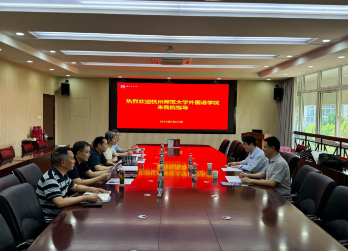 本网讯 5月23日下午,杭州师范大学外国语学院副院长孙立春一行来我院调研交流。学院副院长许宗瑞、张文静以及相关系部负责人和科研秘书参加了座谈。会议由许宗瑞主持。