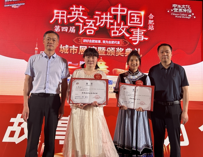 本网讯 5月25日,由中国国家创新与发展战略研究会、中国教育电视台和新航道国际教育集团联合主办的第四届“用英语讲中国故事”合肥站城市展演暨颁奖典礼在合肥隆重举行。经过激烈角逐,我校2023级农艺与种业研究生晏清萍获比赛三等奖与“舞台之星”称号,2022级环境设计专业本科生宋馨雅获优秀奖和“传播之星”称号。