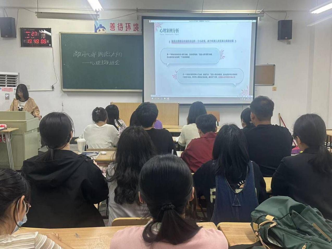 以德育心,向阳生长。5月1日—5月28日,学院各班级召开“敞开心扉,拥抱太阳”为主题的心理健康主题班会活动,班会通过ppt展示、视频播放、游戏互动等形式,学习和探讨基本的心理调适技巧。通过此次班会,学生能够学会有效沟通,保持理性平和的健康心态。