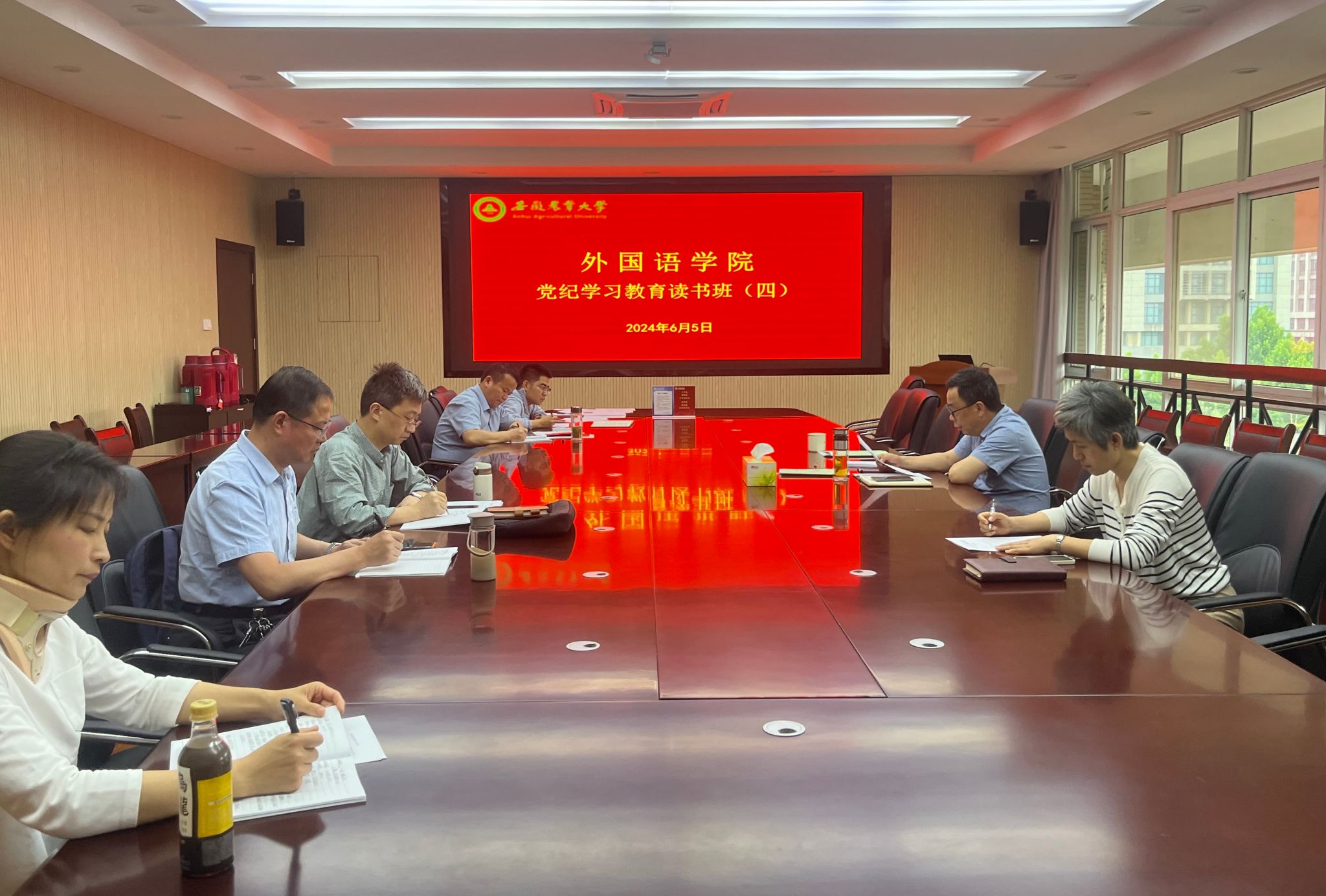 本网讯 6月5日下午,外国语学院召开党纪学习教育第四期读书班。学院党政领导、各党支部书记参加。读书班由学院党委书记何如海主持。