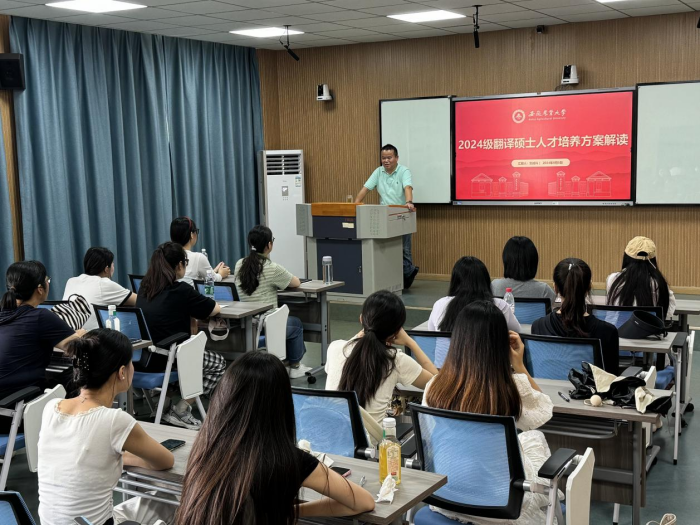 本网讯 2024年9月5日,外国语学院在外语楼303教室召开2024级翻译硕士人才培养方案解读会。会议由翻译硕士学位点负责人、英语系主任刘成科主持、2024级翻译硕士辅导员及全体2024级翻译硕士新生参加了会议。