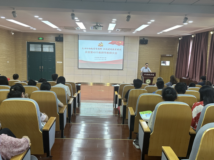 本网讯 为热烈庆祝第40个教师节,9月9日下午,外国语学院在502报告厅召开“大力弘扬教育家精神,加快建设教育强国”为主题的教师节庆祝大会。院党委书记何如海、副书记姬惠惠、副院长张文静、全体教职工和学生党员代表参加。会议由学院副院长许宗瑞主持。