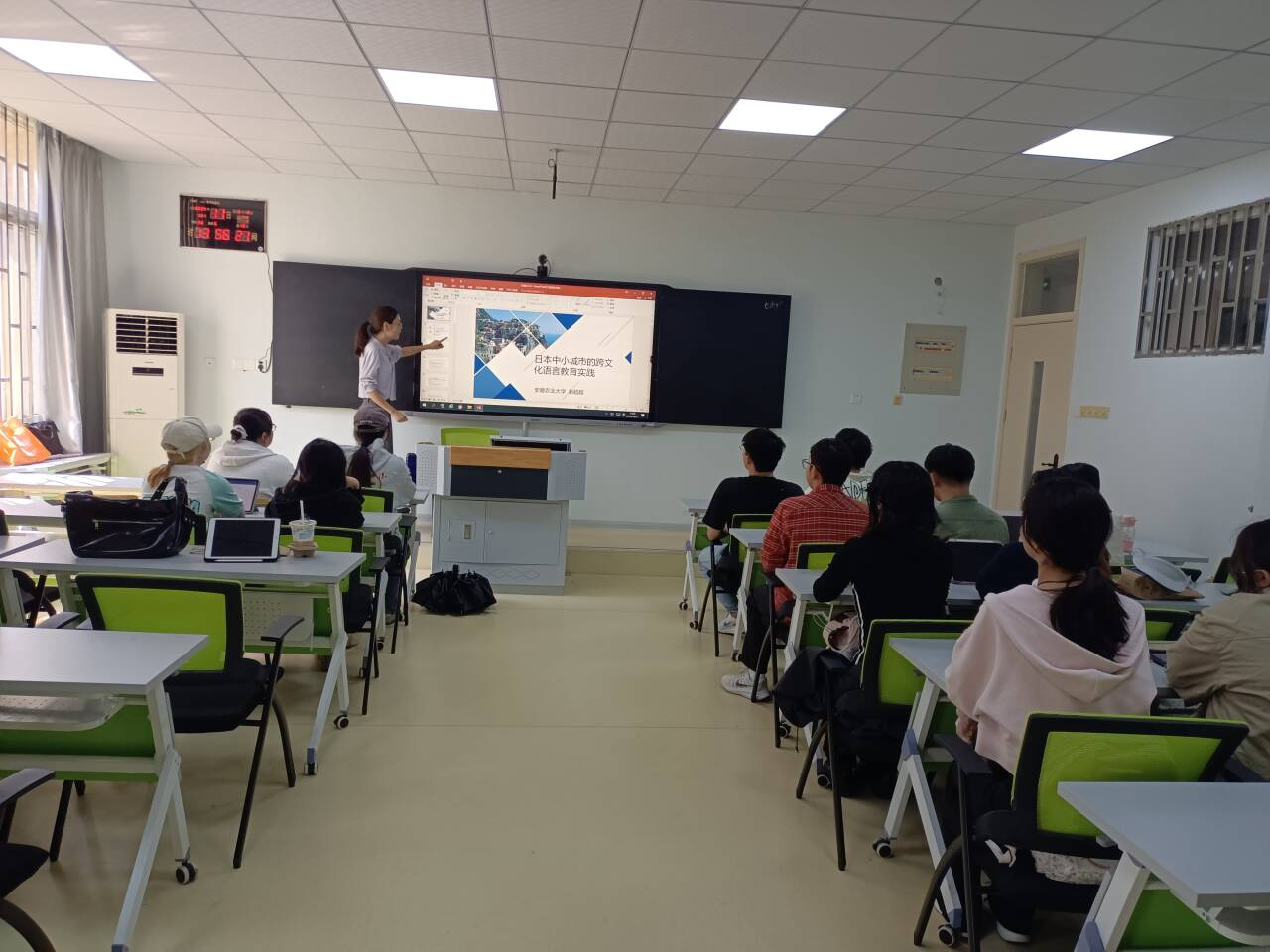 本网讯 10月11日下午,安徽农业大学外国语学院日语系讲师赵超超博士在外国语学院209教室进行了题为“日本中小城市的跨文化语言教育实践”的讲座。该讲座为我院主办的2024年度“亚洲命运共同体”系列学术讲座第六讲。2022级日语专业全体学生参加了本次活动。