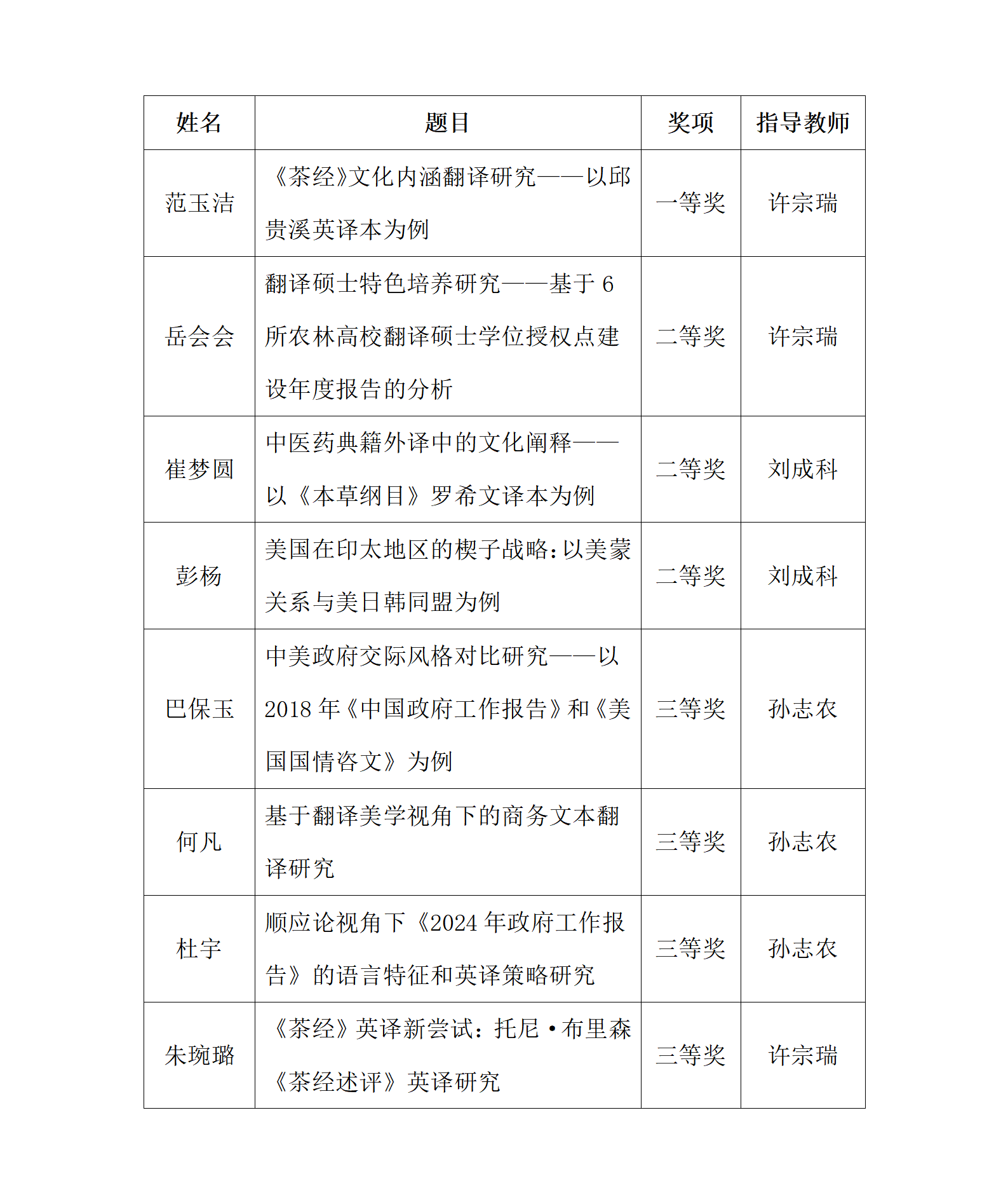 在下午进行的分论坛讨论中,我院参会研究生围绕提交的研究论文分别在语言学分论坛、翻译学分论坛和外语教学及相关研究论坛进行了小组汇报发言。在闭幕式上,论文评选获奖名单公布,范玉洁的论文获评一等奖,崔梦圆、岳会会和彭杨的3篇论文获评二等奖,何凡、巴保玉、朱琬璐和杜宇的4篇论文获评三等奖,充分展现了我院研究生良好的学术风采。(文/图/崔梦圆 编辑/彭倩 预审/许宗瑞 审核/何如海)