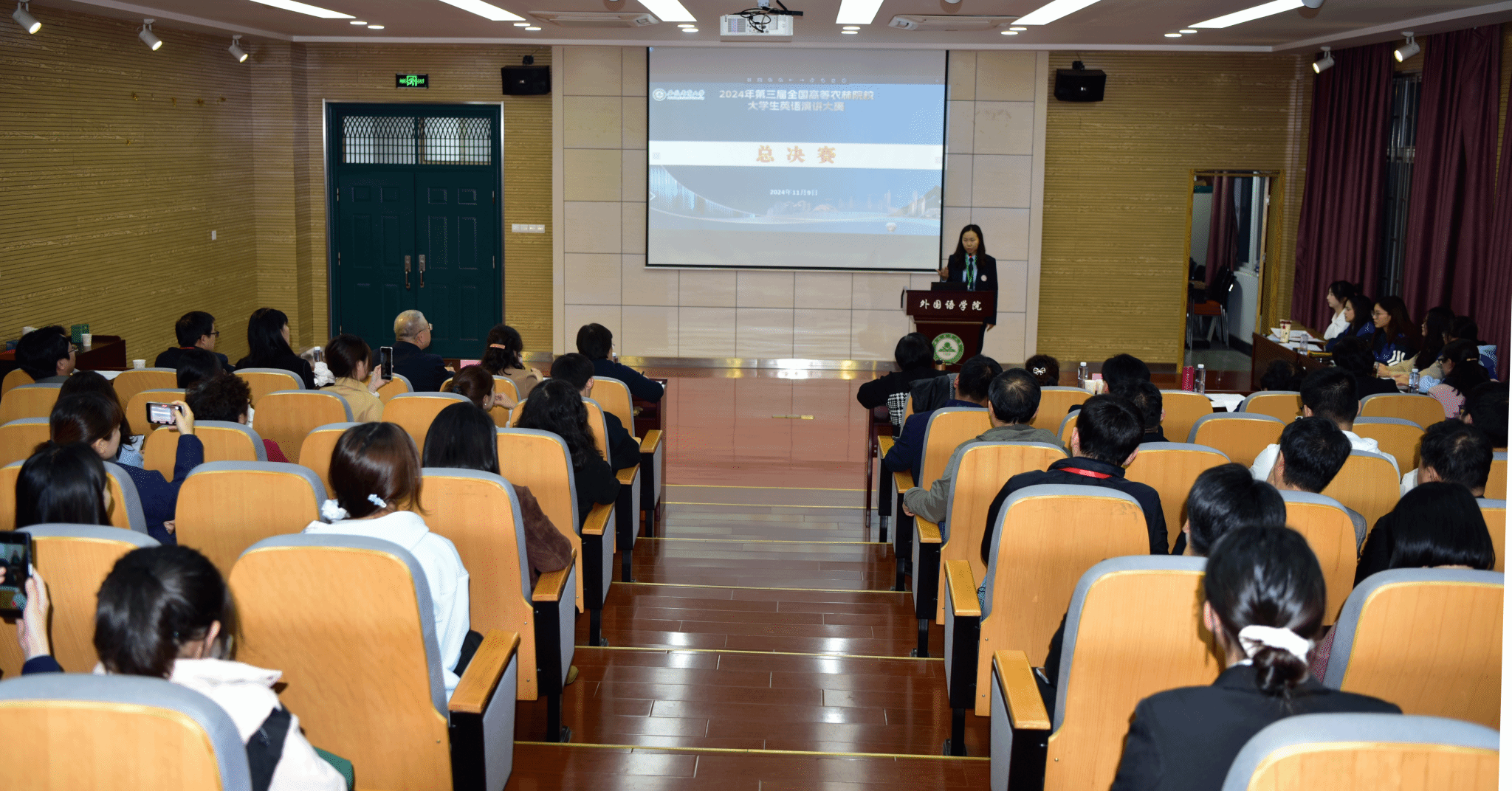 本次年会由全国高等农林院校外语教学研究会、中国农业出版社主办,我校外国语学院承办。学校教务处负责人出席了开幕式,外国语学院师生参加本次年会并观摩了演讲大赛总决赛。(图/沈家平 文/张晗 编辑/彭倩 预审/许宗瑞 审核/何如海)