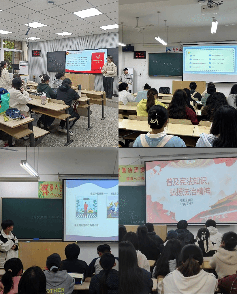 本网讯 为深入贯彻习近平法治思想,弘扬宪法精神,促进我院学生深入学习宪法、理解宪法、维护宪法,能够依法维护自身合法权益。2024年11月14—20日,外国语学院本科生、研究生共34个班级陆续开展了“学宪法,讲宪法”主题班会活动。