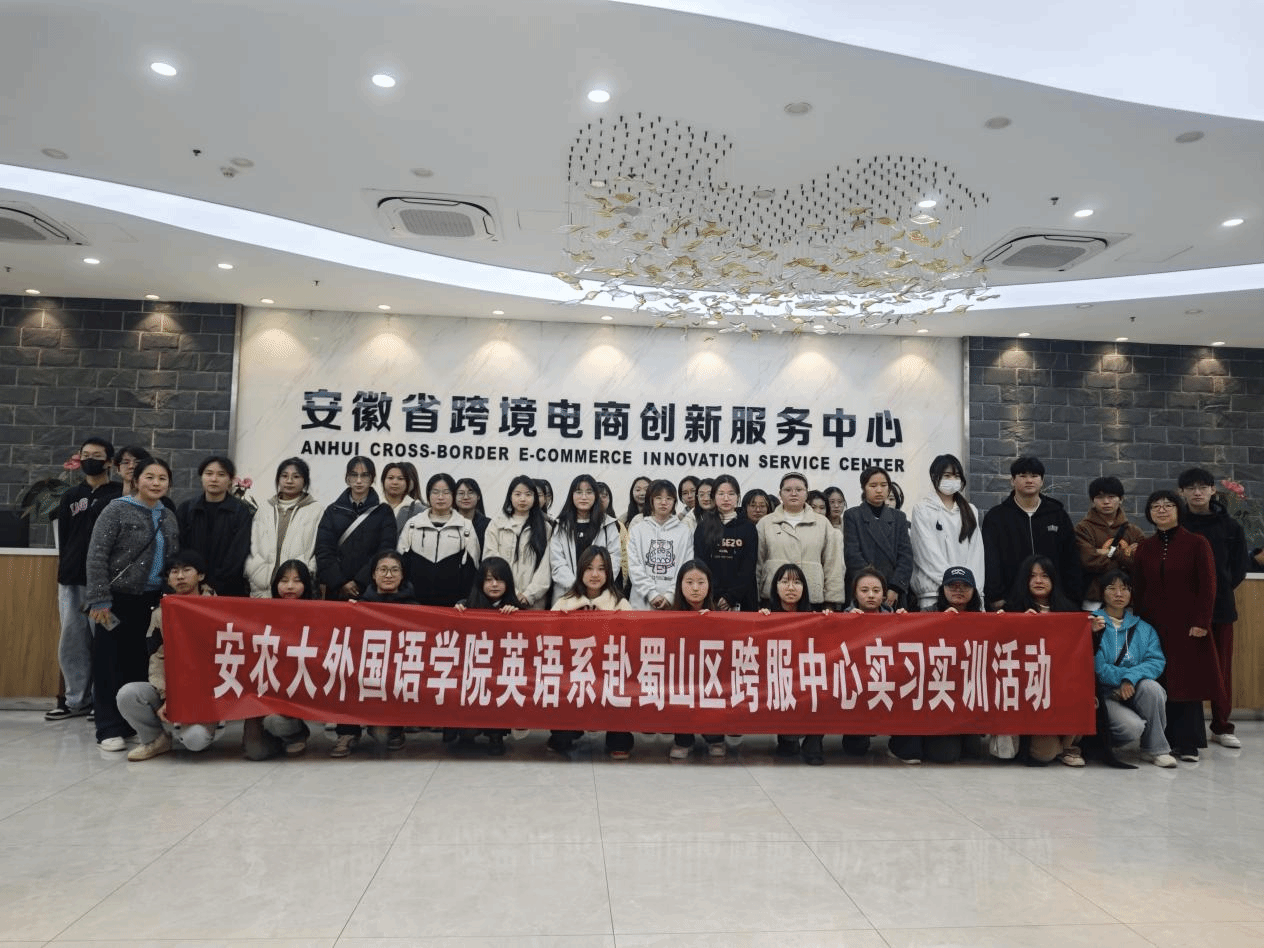本网讯 11月22日下午,外国语学院22级商务英语专业40余名学生,在课程组负责人徐华莉和教学督导罗玲老师的带领下,前往安徽省跨境电商创新服务中心,开展跨境电商实习实训活动。