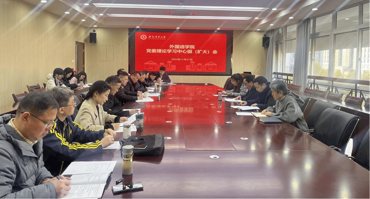 本网讯 11月27日下午,外国语学院召开党委理论学习中心组(扩大)学习会。学院党政领导、党委理论学习中心组成员参会。会议由学院党委书记何如海主持。