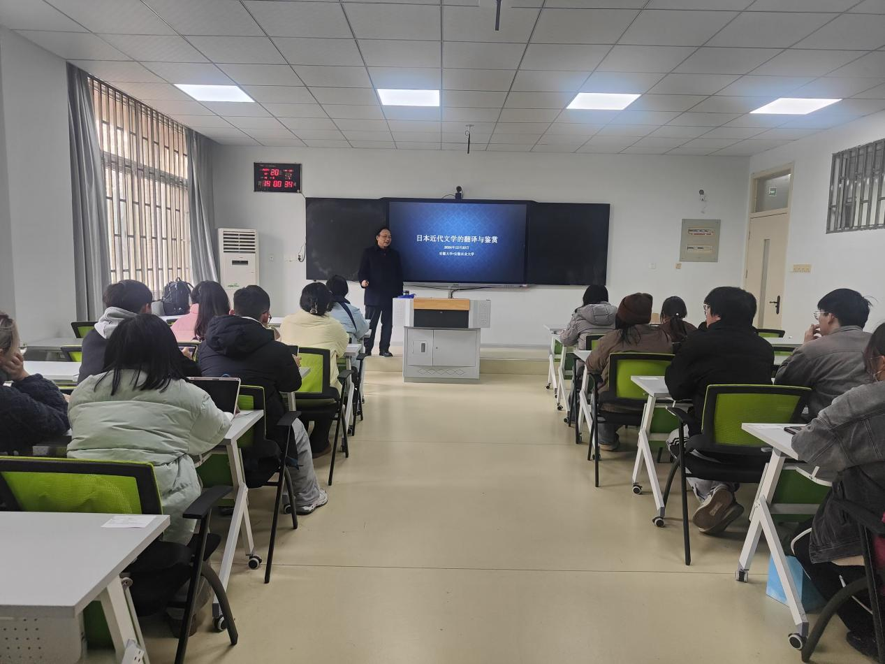 本网讯 12月20日,教育部高等学校外国语言文学类教学指导委员会日语分委员会委员、中国日语教学研究会副会长暨上海分会会长、博士生导师、同济大学外国语学院日语系主任刘晓芳教授应我院日语系之邀,作了题为“日本近代文学的翻译与鉴赏”的精彩讲座。本次讲座是我院日语系主办的2024年度“亚洲命运共同体”系列学术讲座的第十五讲,2022级日语专业学生及日语系教师参加了此次讲座。