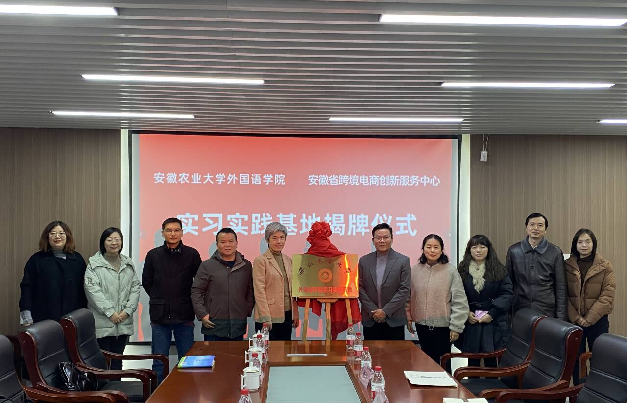 本网讯 12月20日下午,外国语学院与安徽省跨境电商创新服务中心共建实习实践基地举行挂牌仪式。服务中心副主任李先玉、副院长张文静和商务英语教学团队的老师们一起在电商创新服务中心参加了挂牌仪式。