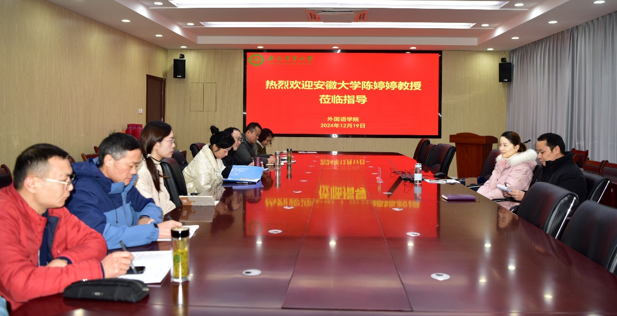 本网讯 为做好2025年度国家基金申报准备,提高申报质量,12月19日下午学院召开国家基金申报辅导会,会议邀请了安徽大学外语学院陈婷婷教授现场指导,辅导会由副院长许宗瑞主持。