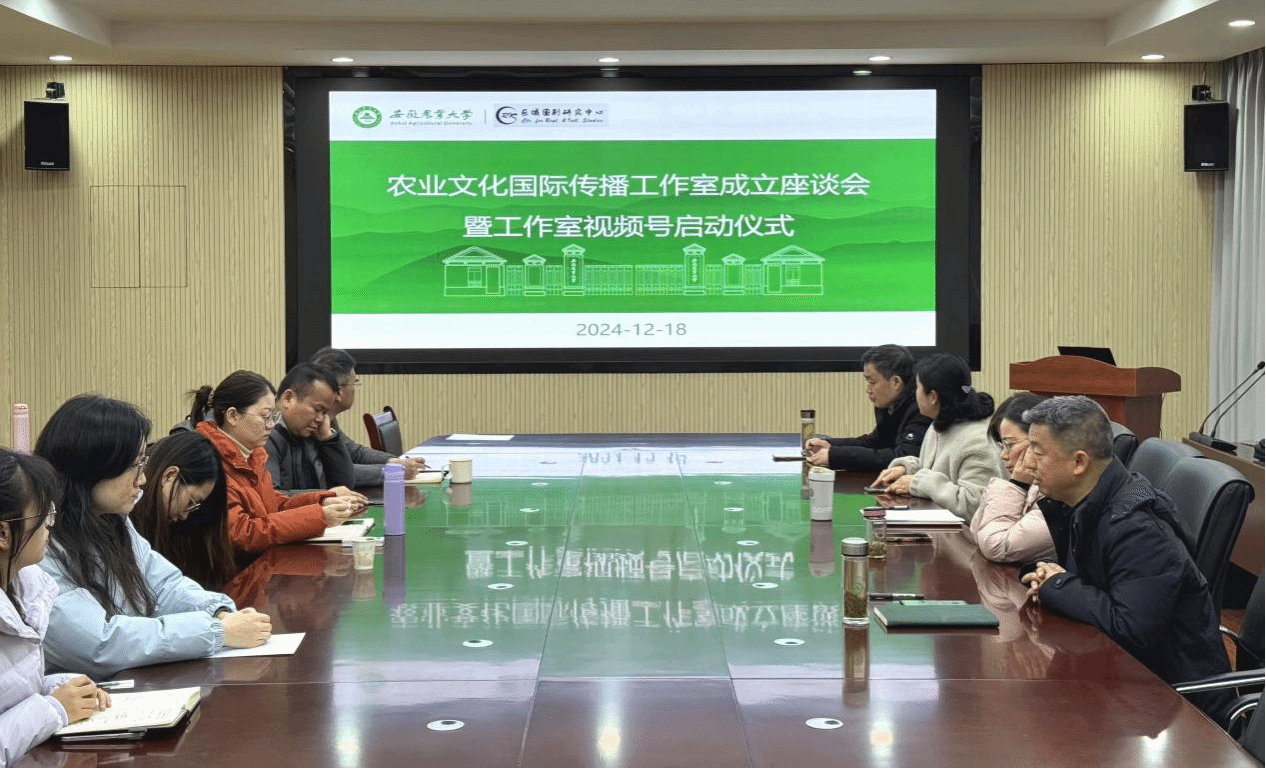 本网讯 近日,安徽农业大学区域国别研究中心在学院506会议室举办了农业文化国际传播工作室成立座谈会暨工作室视频号启动仪式,中心骨干成员和部分师生代表参加了此次座谈会。