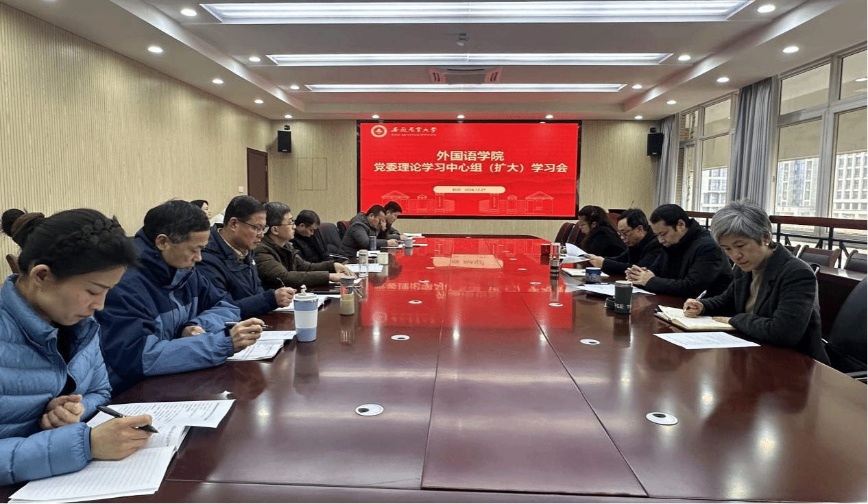 本网讯 12月27日下午,外国语学院召开党委理论学习中心组(扩大)学习会。学院党政领导、党委理论学习中心组成员参会。会议由学院党委书记何如海主持。