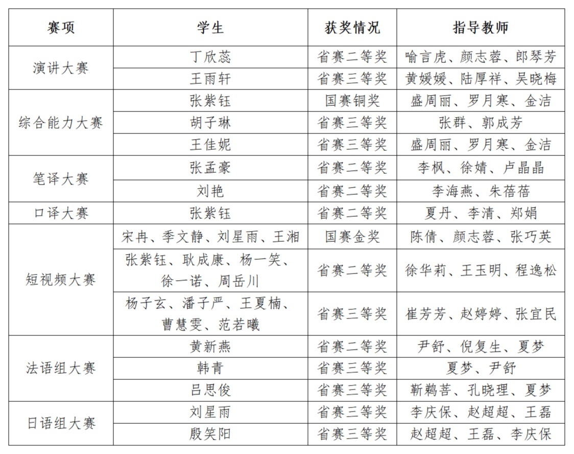 近年来,外国语学院秉承“以赛促学、以赛促教、以赛促创”理念,积极鼓励学生参加各级各类学科竞赛,统筹组建专业教师团队给予学生充分指导,不断践行“强农先锋、社会英才”的人才培养目标。(图/文/陈倩 编辑/彭倩 预审/张文静 审核/何如海)