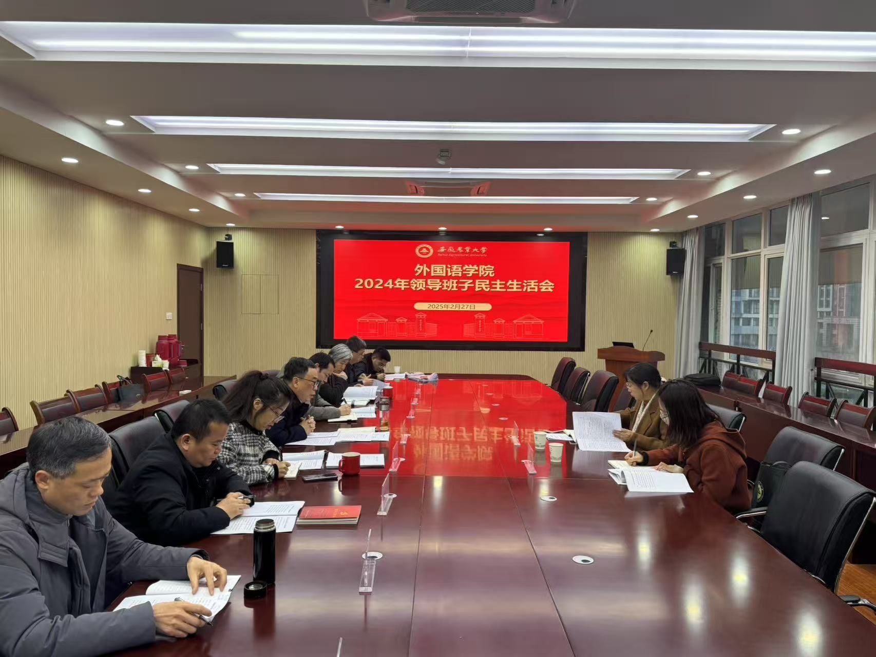 本网讯 2月27日下午,外国语学院领导班子召开2024年民主生活会。机关党委书记、党委组织部副部长葛红,党委组织部组织科科长,院党政领导班子、党委委员出席。会议由院党委书记何如海主持。