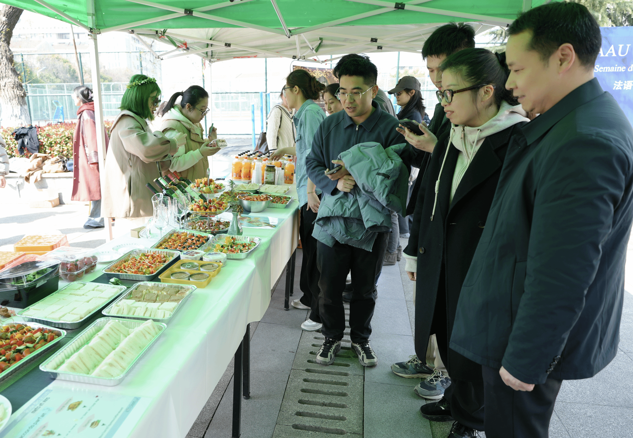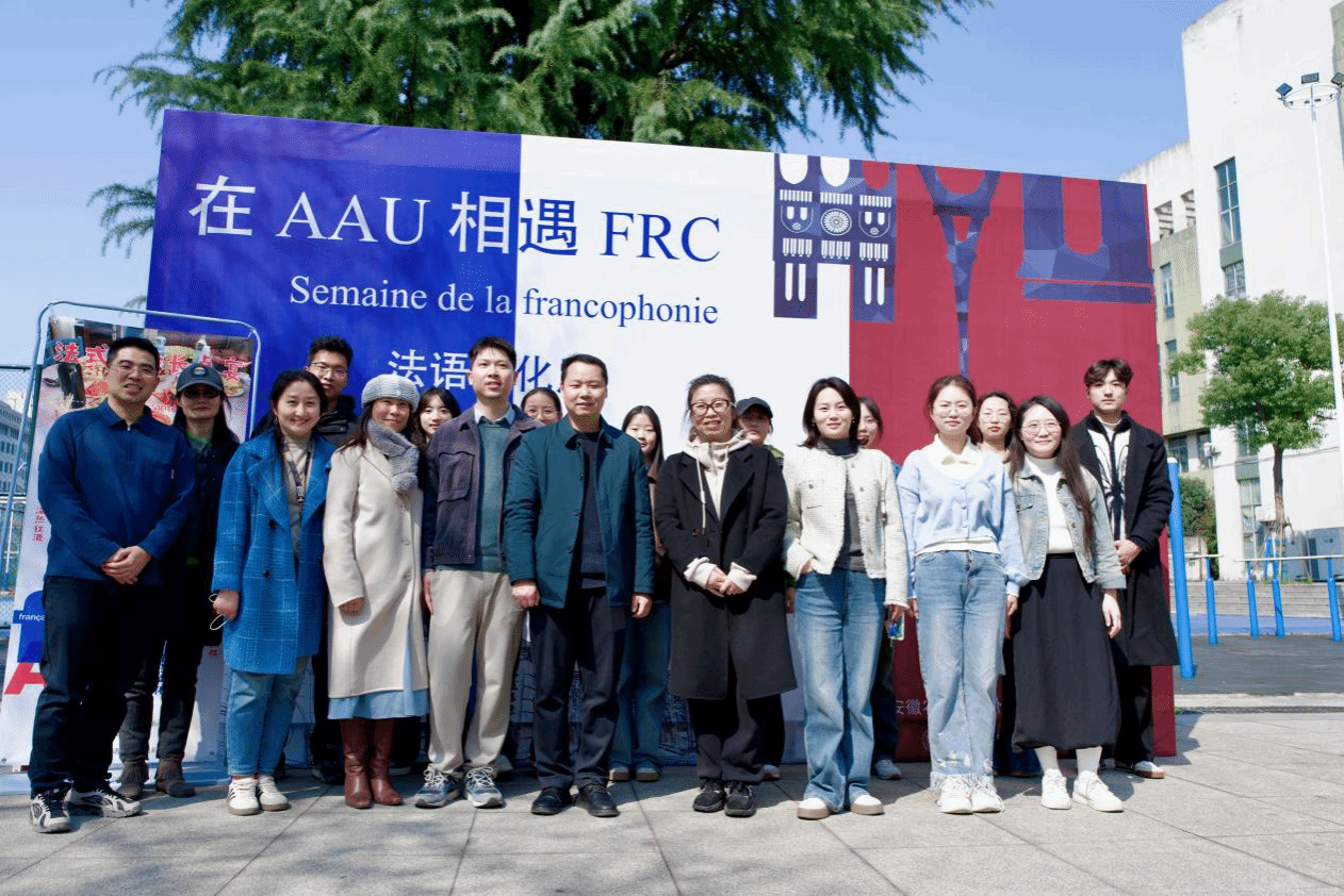 本网讯 3月19日,外国语学院在欣苑食堂西侧广场举办了“法语文化节——在AAU相遇FRC”活动。学院党政领导、法语系老师到场指导。