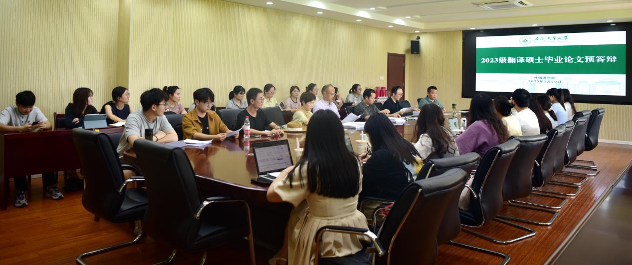 本网讯 为了严把学位论文质量关,5月20日,外国语学院举办2025届翻译硕士学位论文预答辩会。硕士生导师及全体翻译硕士研究生参与活动。