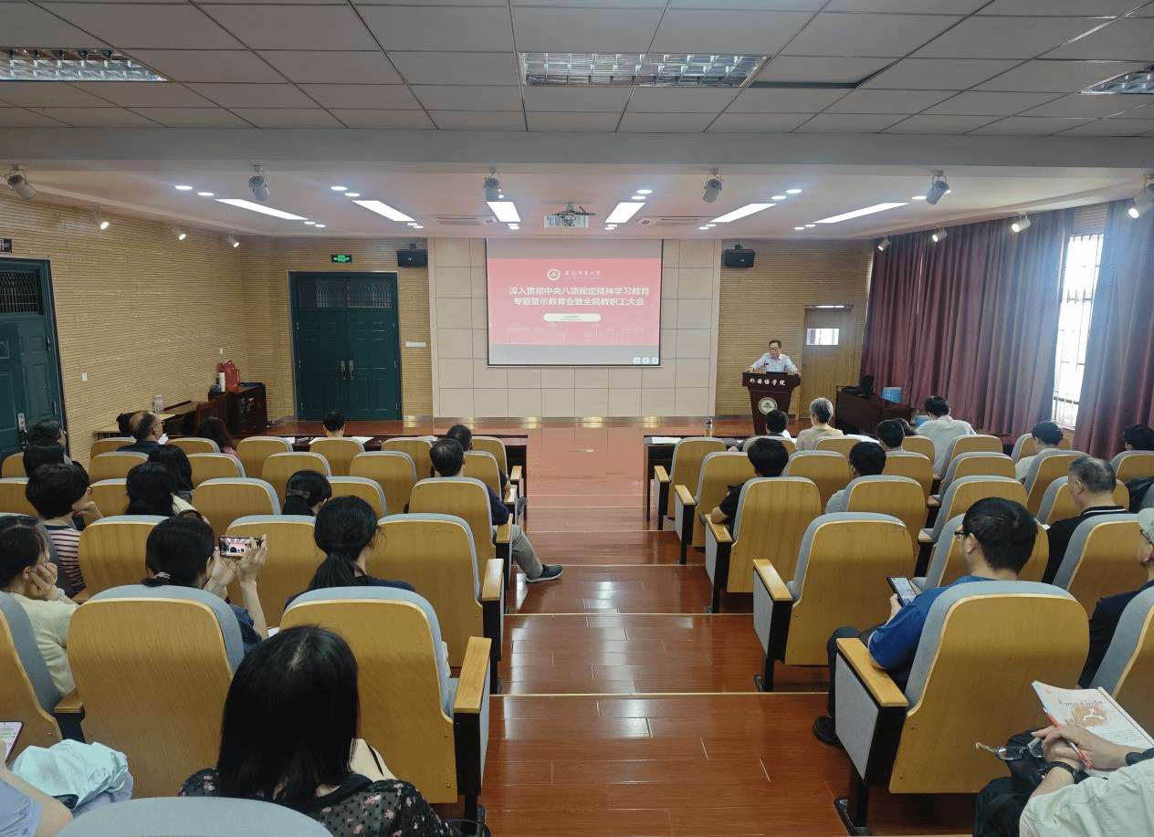 会议传达学习了全省深入贯彻中央八项规定精神学习教育学查改一体推进大会精神、全省警示教育大会精神、《关于开展群众身边不正之风和腐败问题集中整治再抓两年的工作方案》《党的十八大以来深入贯彻中央八项规定精神的成效和经验》《关于做好2025年“五一”端午期间纠“四风”树新风工作的通知》,就违反中央八项规定精神典型问题、高校师德违规典型问题等负面案例进行了通报。(文/张晗 图/殷霞 编辑/彭倩 预审/许宗瑞 审核/何如海)