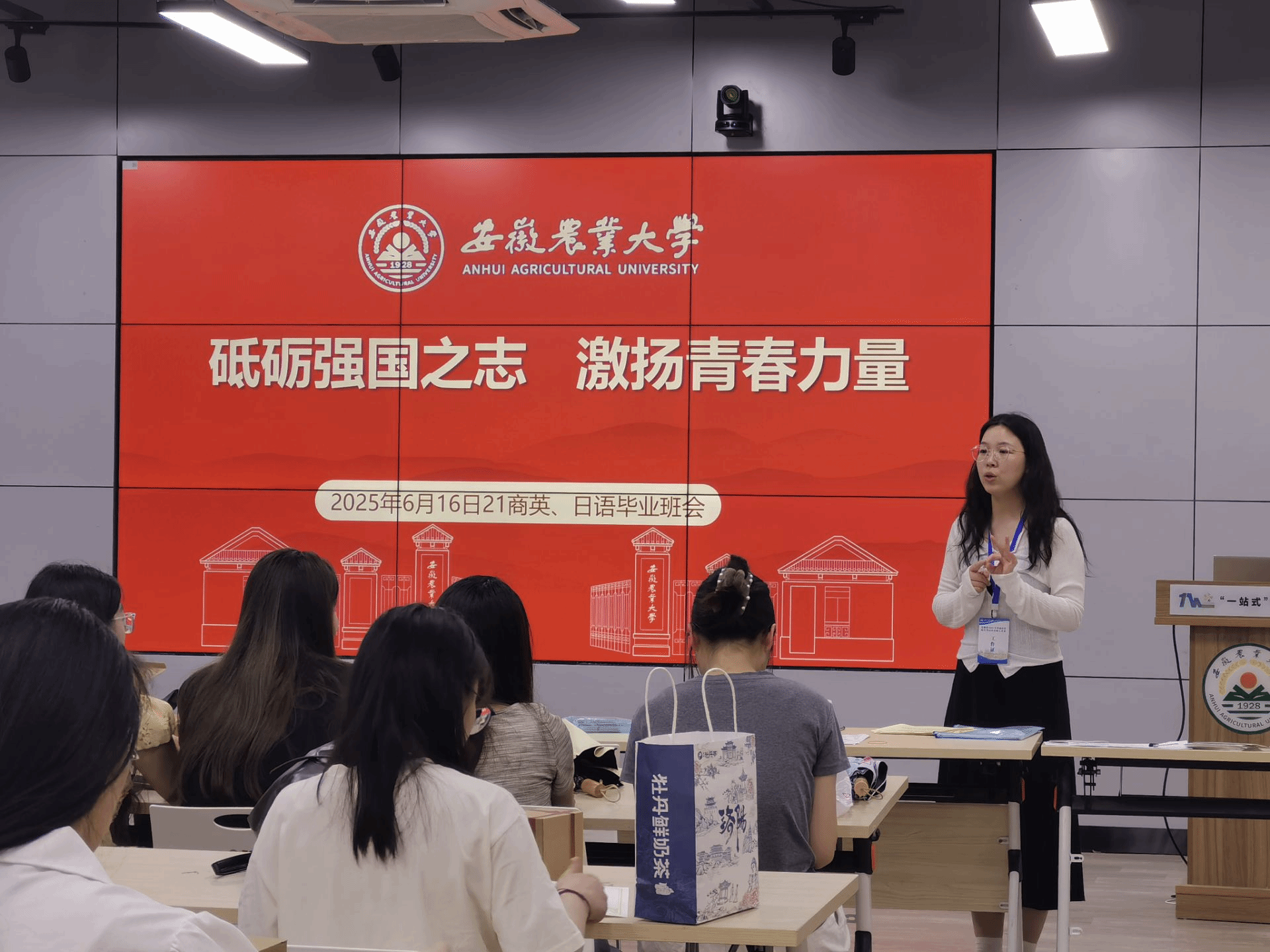 6月16日上午,“一站式”学生社区南区气氛热烈,外国语学院毕业班班会在此举行。师生们围坐一起,共同回顾校园生活的美好瞬间,展望未来的广阔征程。辅导员激励毕业生们胸怀强国之志,以青春之我、奋斗之我书写精彩人生篇章。同时,辅导员还详细讲解了离校安全注意事项,为毕业生们安全离校、顺利开启新征程筑牢安全防线。