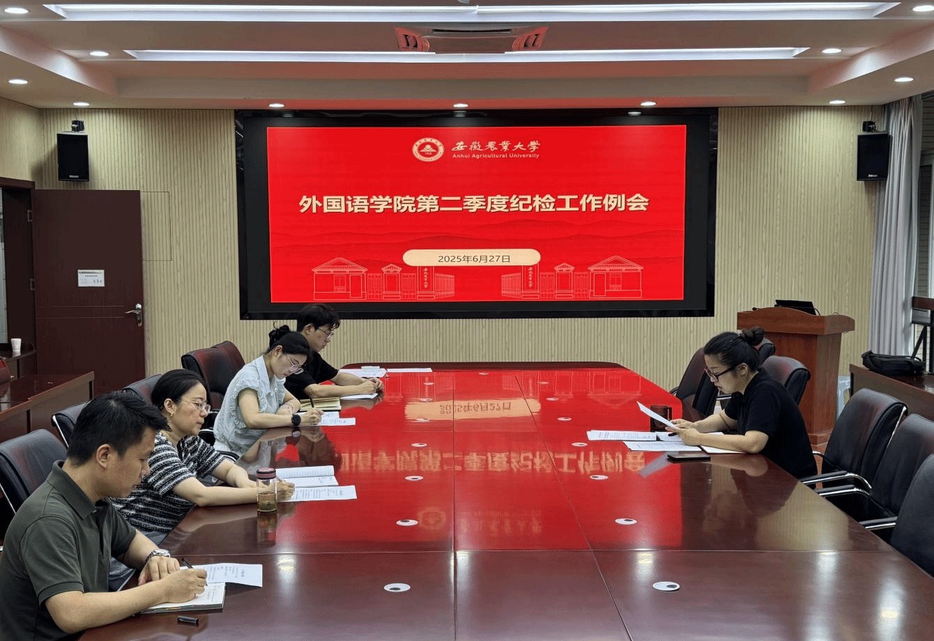 本网讯 6月27日上午,外国语学院在外语楼506会议室召开第二季度纪检工作例会,院纪委委员、党支部纪检委员参会,会议由院党委副书记、纪委书记姬惠惠主持。