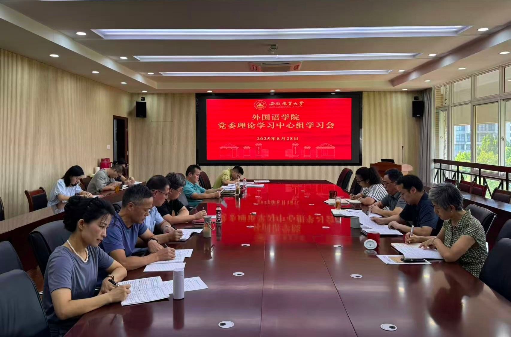 本网讯 8月28日下午,外国语学院召开党委理论学习中心组学习会,院党政领导、党委委员、党支部书记及管理人员参会,会议由院党委书记何如海主持。