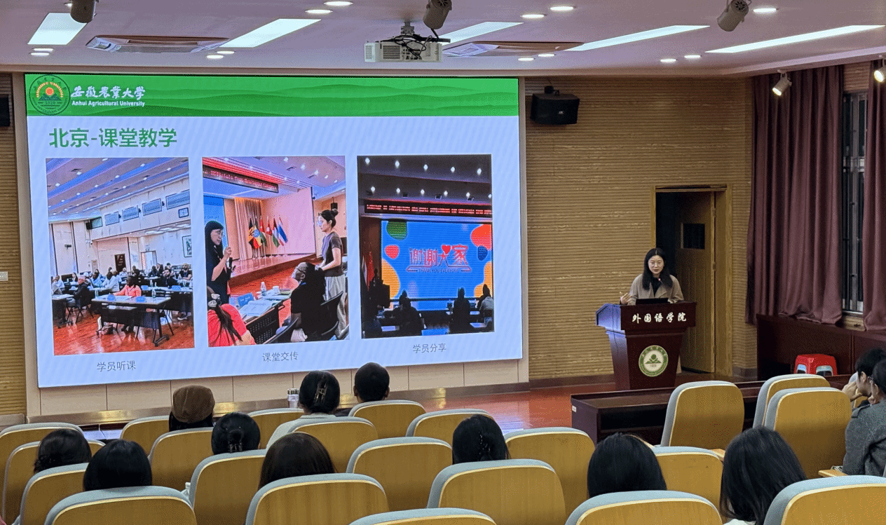本网讯 11月6日下午,我院在外语楼502报告厅举办了由农业农村部承办的发展中国家农业及农村发展官员研修班实习实训分享会,活动由翻译硕士学位点负责人、英语系主任刘成科教授主持,全体翻译硕士研究生参加了分享会。