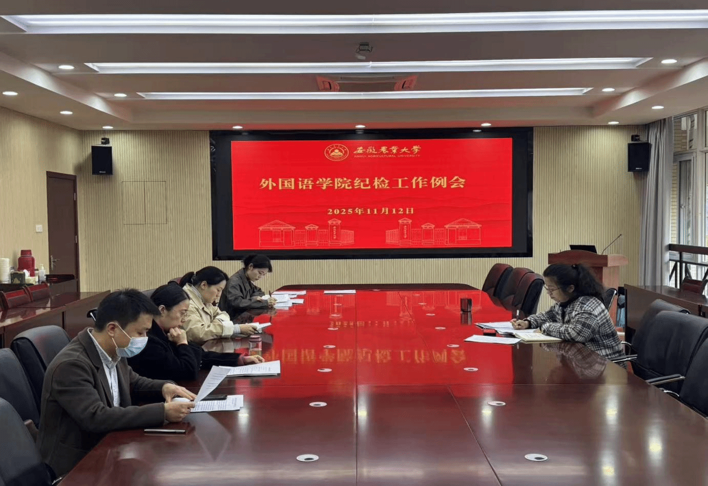 本网讯 11月12日下午,外国语学院在外语楼506会议室召开纪检工作例会,院纪委委员、党支部纪检委员参会,会议由院党委副书记、纪委书记姬惠惠主持。