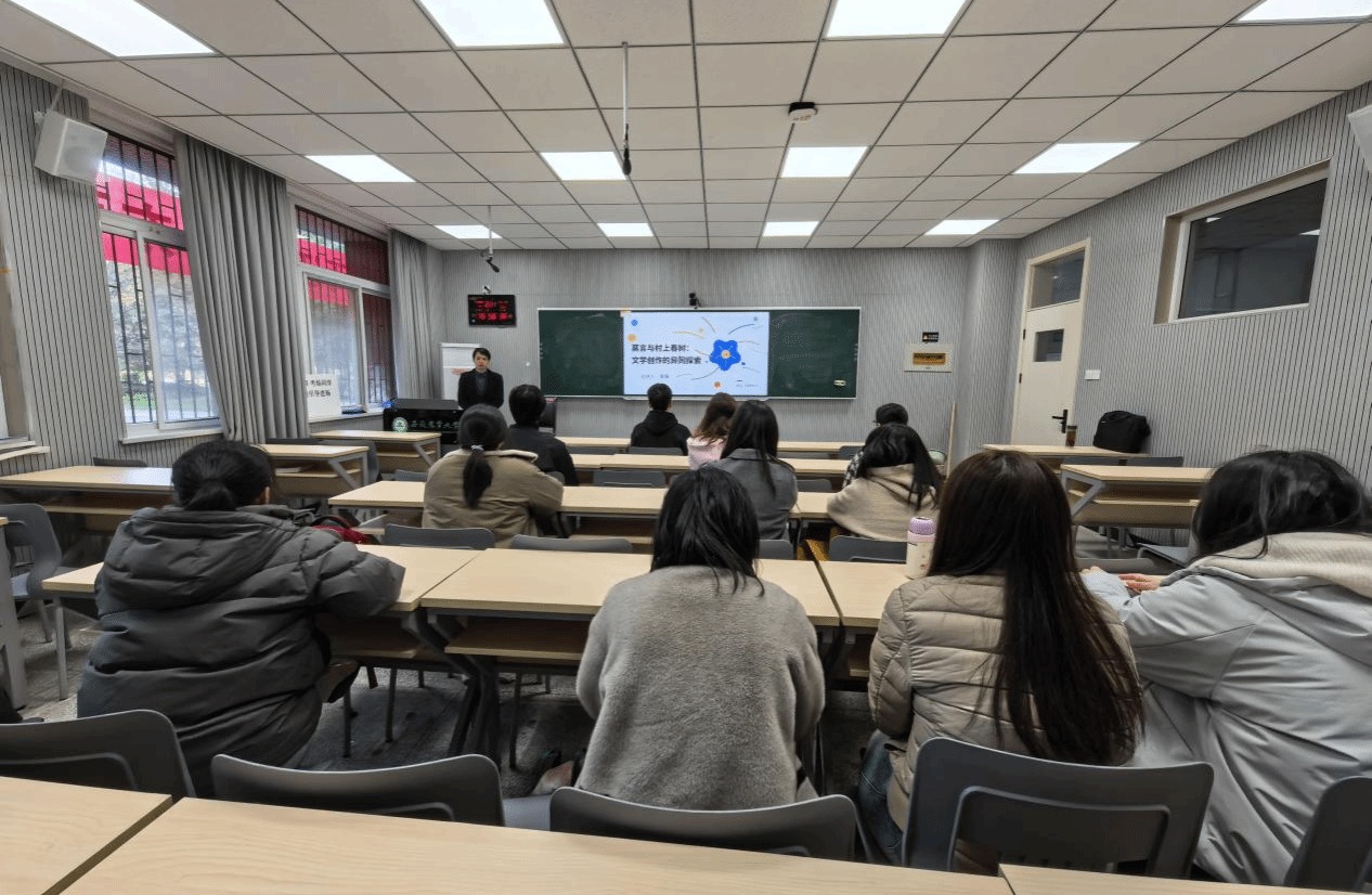 黄老师剖析了莫言植根乡土的魔幻现实主义风格与村上春树受多元文化影响的现代主义叙事。他指出,尽管两位大师手法各异,但在魔幻与现实的交织、对人性的深刻洞察及动物意象的运用上却高度契合。黄老师强调,作为大众文学的杰出代表,他们都深刻反映了普通民众的心声。本次讲座视角新颖,内容翔实,不仅激发了师生对跨文化文学比较的兴趣,也为理解亚洲文学的多样性与共通性提供了宝贵启示。(文图:王磊 初审:彭倩 复审:张文静 终审:何如海)