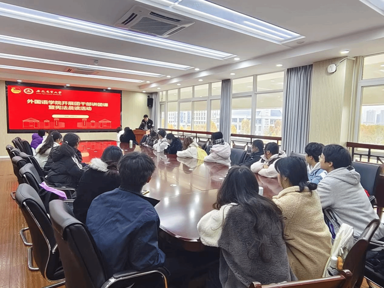 本网讯 为强化团干部责任意识,厚植青年学子法治观念,12月4日,外国语学院在外语楼506会议室开展团干部讲团课暨宪法晨读活动,全体团干部及团员代表参与此次活动。