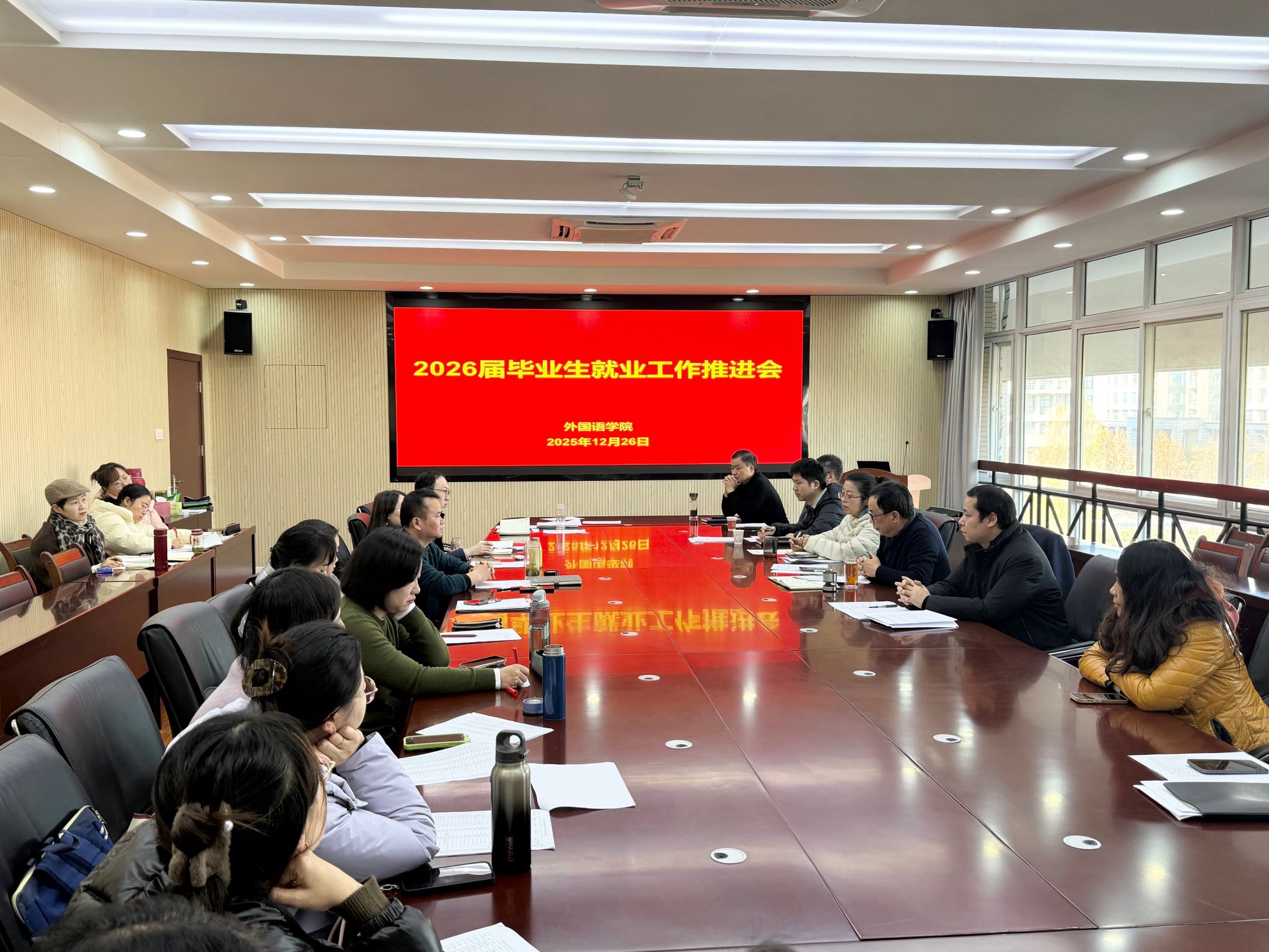 本网讯 12月26日上午,外国语学院在506会议室召开学院2026届毕业生就业工作推进会,学院领导、各系部主任、副主任、毕业班辅导员、本科生毕业论文指导老师、硕士生导师、教学秘书、就业联络员等参加会议,会议由副院长许宗瑞主持。