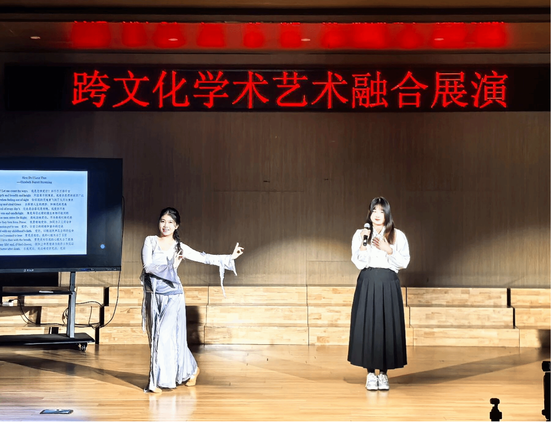 在“皖美文心 传播中国——跨文化学术艺术融合展演”环节中,朗琴芳团队的《春诗三重奏》、《黄梅戏唱英语诗歌》等原创作品受到一致好评,展现了英语诗歌教学与跨文化传播领域的创新成果。