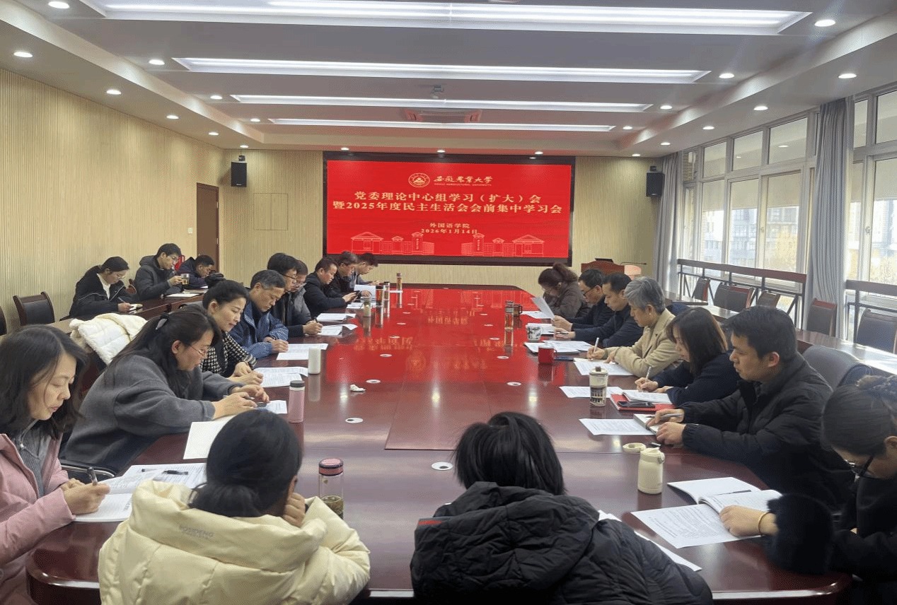 本网讯 1月14日下午,外国语学院召开党委理论学习中心组学习(扩大)会暨2025年度民主生活会会前集中学习会。学院党委委员、非党员领导干部、各党支部书记及委员参加会议,会议由学院党委书记何如海主持。