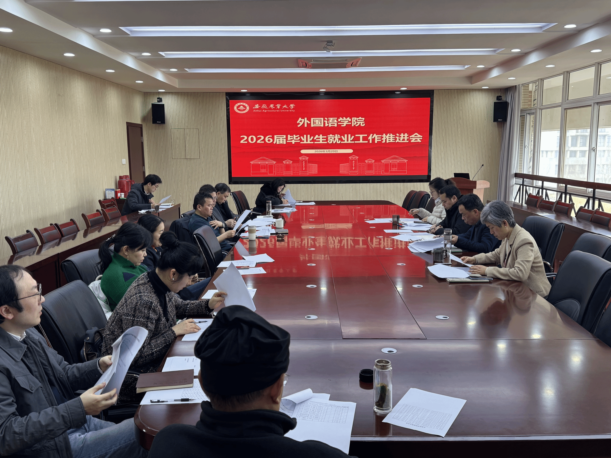 本网讯 为抢抓春季招聘黄金期,全力促进2026届毕业生高质量充分就业,3月20日上午,外国语学院2026届毕业生就业工作推进会在外语楼506会议室召开,学院领导、各系(部)主任、硕士生导师、毕业班辅导员、就业联络员等参加会议,会议由副院长许宗瑞主持。