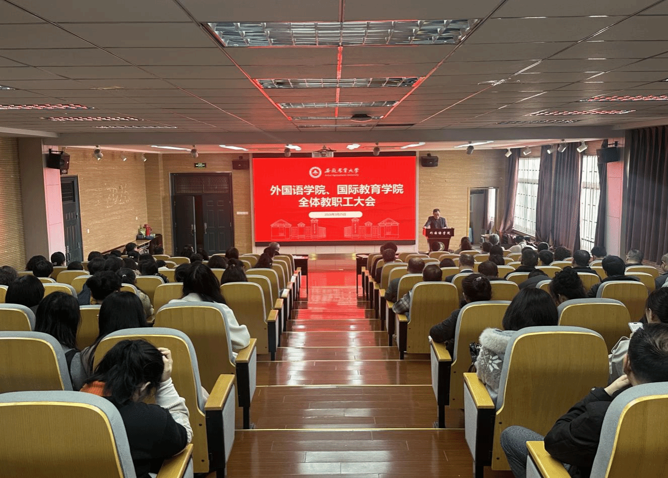 本网讯 3月25日下午,外国语学院、国际教育学院在外语楼502多功能报告厅举行全体教职工大会。外国语学院、国际教育学院领导班子成员许宗瑞、姬惠惠、张文静、丁惠以及学院全体教职员工参加了会议。会议由学院党委书记何如海主持。