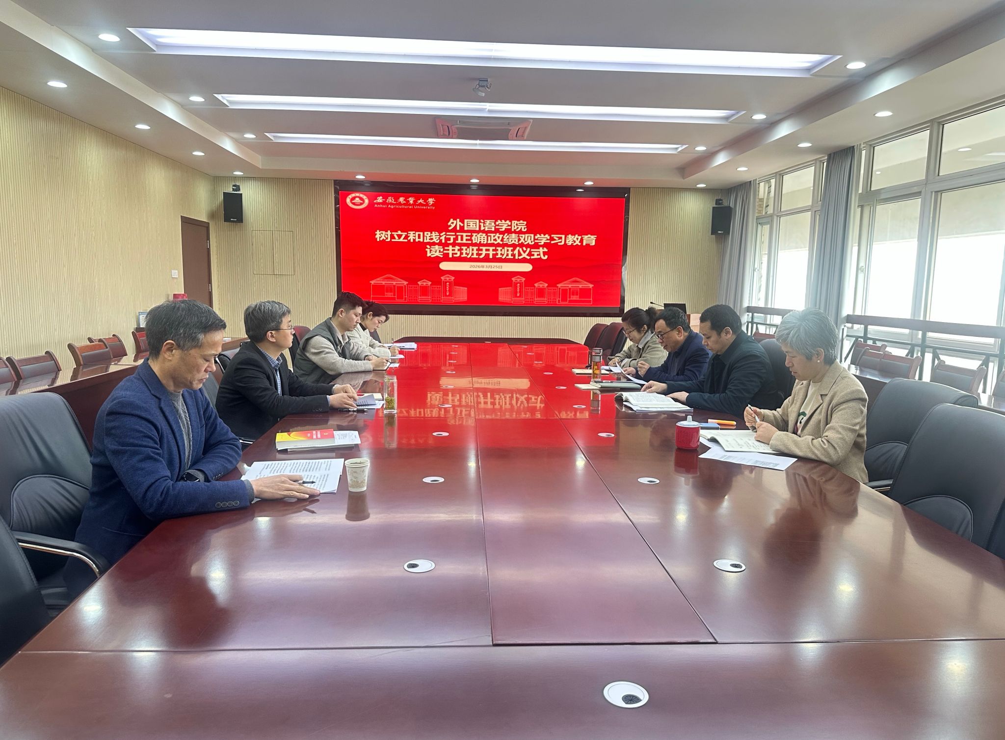 本网讯 3月25日上午,外国语学院在院506会议室举行树立和践行正确政绩观学习教育读书班开班式,院党委委员、党支部书记参会,会议由院党委书记何如海主持。
