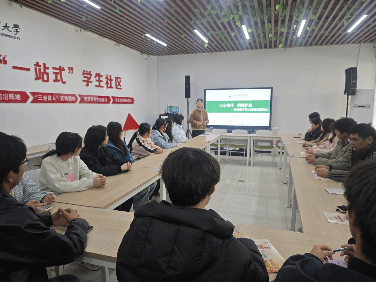培训与赋能并重,激活朋辈互助新动能。学院紧扣“以心相伴,同辈护航”主题,组织开展春季心理委员专题培训。培训聚焦“认识支持角色、识别心理信号、掌握互助技巧”三大核心,切实提升了心理委员的履职能力与敏感度,为夯实基层心理健康工作队伍、发挥朋辈辅导优势奠定了坚实基础。